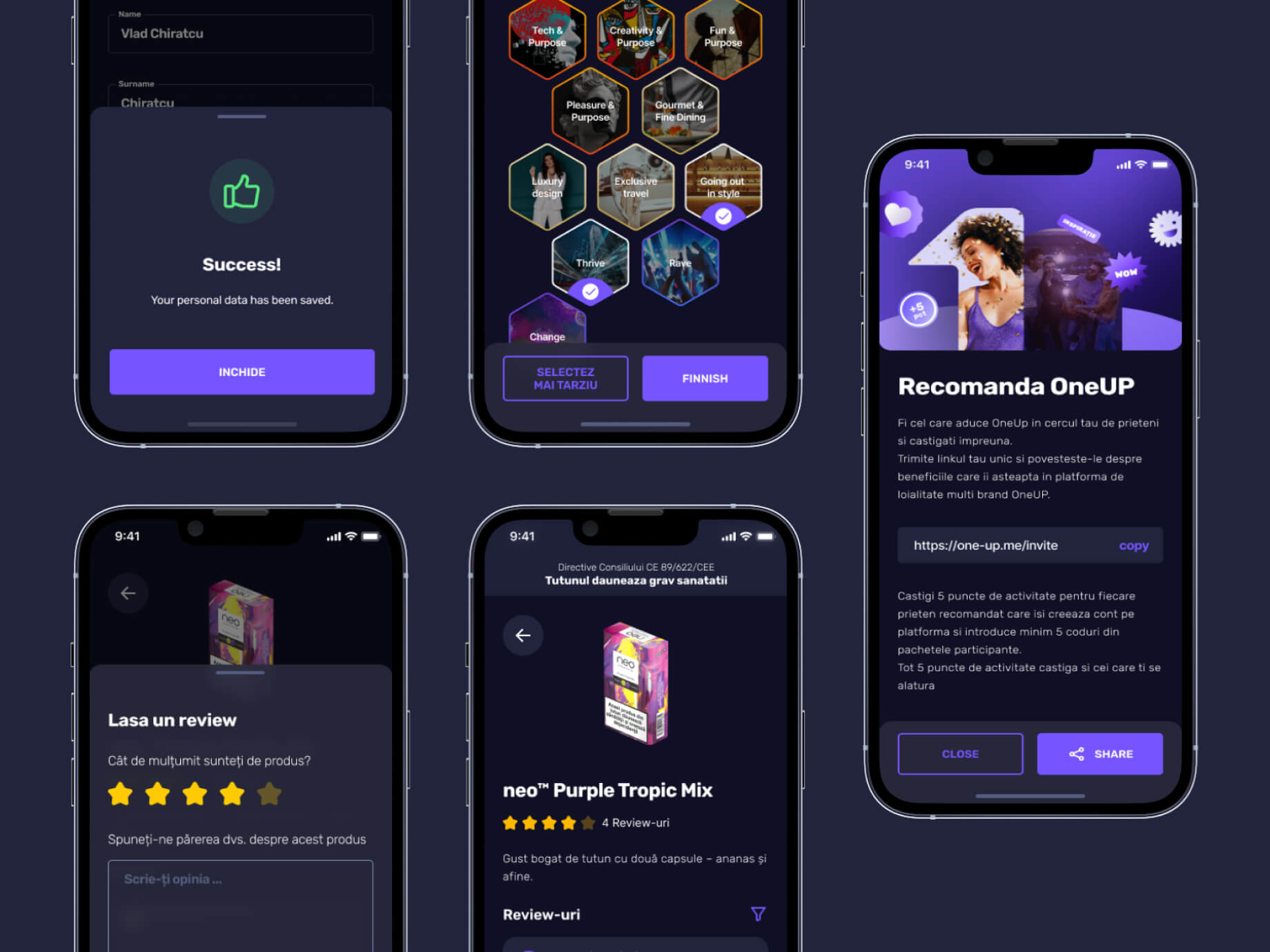 Focusing on the exclusive target audience of FMC & THP consumers over 18 residing in Romania, our platform's design embodies a fusion of contemporary flair and international allure. While catering to diverse user personas spanning Baby Boomers to Gen Z, our design ethos resonates with young, educated adults propelled by a quest for status and novelty. Embracing the spirit of early adopters, our interface promises a seamless blend of sophistication and innovation, delivering value through fashionable aesthetics and cutting-edge technology. From sleek to modern visuals, our design narrative caters to the discerning tastes of individuals who seek both stylish expression and experiential exploration, ensuring a captivating journey for every user.